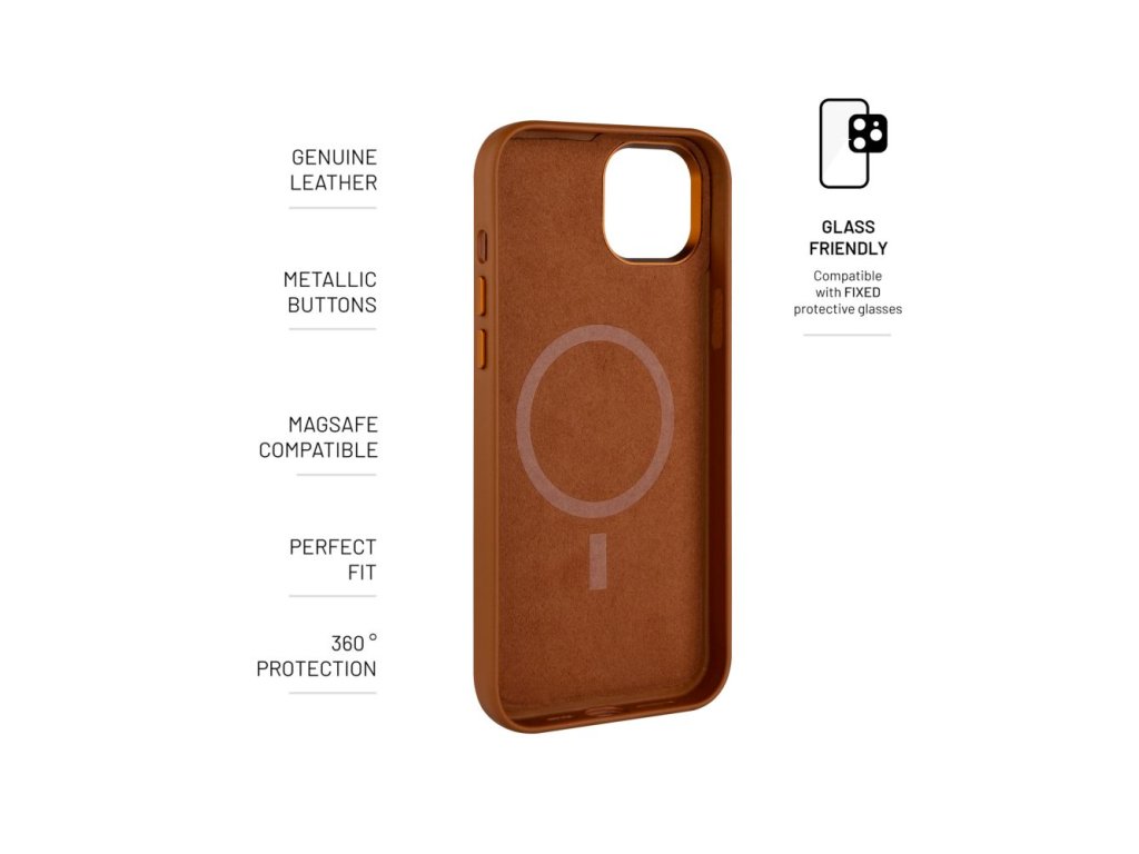 Zadní kryt FIXED MagLeather s podporou funkce MagSafe, vyrobený z pravé kůže pro dokonalou ochranu vašeho chytrého telefonu. Pouzdro zaujme na první pohled elegantním vzhledem barevné kůže v kombinaci s metalickými krytky tlačítek a lemováním okraje výřezu na fotoaparát. Časem každý kryt získá jedinečnou a originální patinu a zraje tak jako víno. Díky integrovaným magnetům v zadní části kryt MagLeather perfektně spolupracuje s veškerým MagSafe příslušenstvím. Vnitřní strana krytu je tvořena jemnou vystýlkou z mikrovlákna pro dokonalé bezpečí vloženého telefonu. FIXED MagLeather je navržen přesně na míru danému modelu telefonu, dokonale sedí a dobře se drží v ruce.
