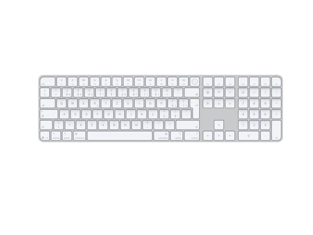Originální bezdrátová klávesnice Apple Magic Keyboard s rozšířeným rozložením, numerickým blokem a snímačem Touch ID přináší maximální komfort při psaní i vyšší úroveň zabezpečení. Díky integrované čtečce otisků prstů umožňuje rychlé přihlášení do Macu, potvrzování nákupů nebo odemykání systému jediným dotykem.
